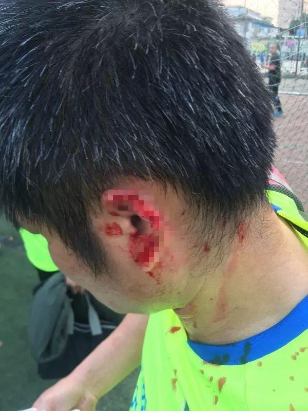 今天,1003听众爆料:3月31日下午,在广西大学“老野杯”的一场比赛中(粤桂球会对阵马路队),两队球员发生争执并发生群体斗殴事件。其中,粤桂球会41号球员耳朵被马路队27号球员咬伤。