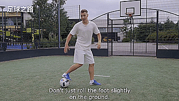如果我们将球控制在身后,我们就可以很轻松的用脚后跟将球踢起来,然后落到身前。