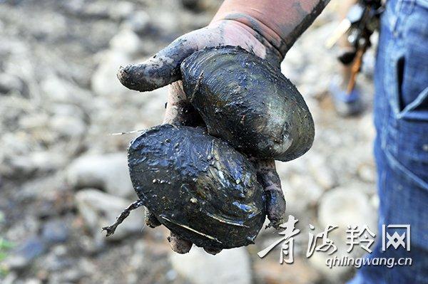 淤泥中捞上来的河蚌。
