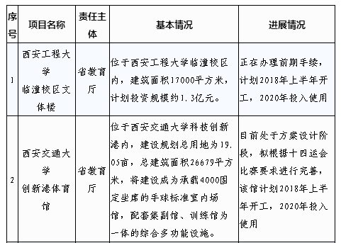 西安工程大学、西安交通大学、西安理工大学、西北大学4所高校体育馆。