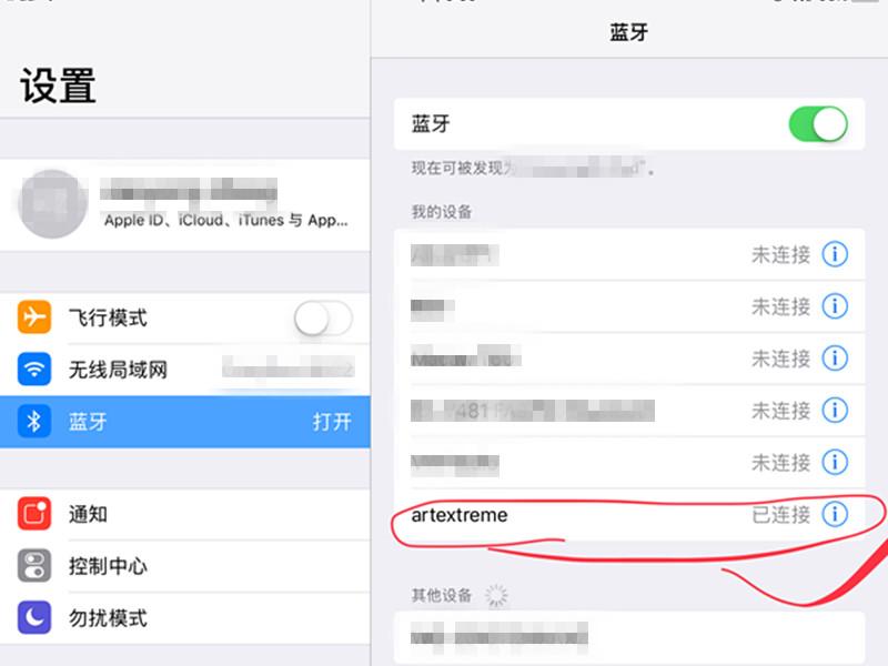 此时,打开需要连接蓝牙的设备,如笔者所用的安卓手机,就会出现“artextreme”的可用设备,点击连接即可。