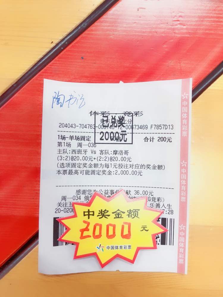 这名彩民命中了西班牙和摩洛哥的比分,中奖者是店里的忠实彩友。他认为:“西班牙vs摩纳哥,竞彩让两球负只有1.5左右,说明西班牙穿盘可能性非常小。再看了其它*彩博**公司的让一球的*率赔**是2.1左右。西班牙作为夺冠热门球队之一,这样的*率赔**太诱人了,不可能净胜两球的。大小球是2.5/3球低水,极有可能是大球,所以比较看好2:2、3:2,不输球,肯定输盘。”有眼光。