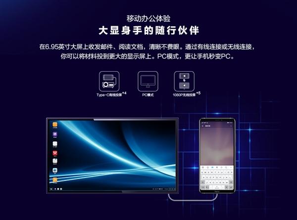有线投屏即通过Type-C转HDMA/DP/VGA线与大屏连接,可直接将手机投屏到大屏幕,获得EMUI Desktop界面,享受PC化体验,并可配套蓝牙键盘鼠标使用。