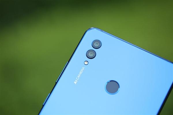 荣耀Note10机身背面覆盖了2.5D玻璃,看起来圆润轻薄而光滑,质感细腻。机身背面的蓝色调配有着荣耀家族设计语言的经典味道,光芒闪烁却沉稳内敛。