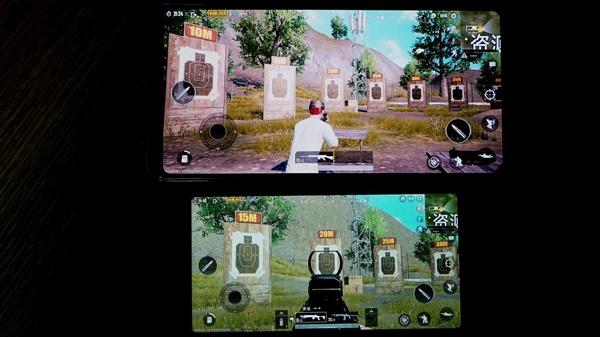 如图所示,使用荣耀Note 10机瞄的视野面积远远超过下方机型,而使用前者机瞄视角捕捉到的目标物下方机型需开启倍镜才能看到。