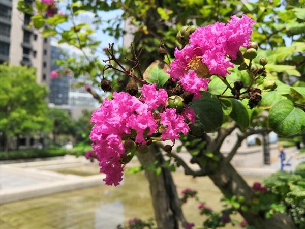 这是正午骄阳下,粉嫩紫薇花的微焦样张,画面整体颜色还原准确,如果放大细节,甚至可以看到细微的蛛丝残网,而花蕊处则更明晰可见。