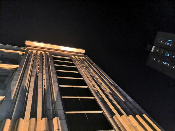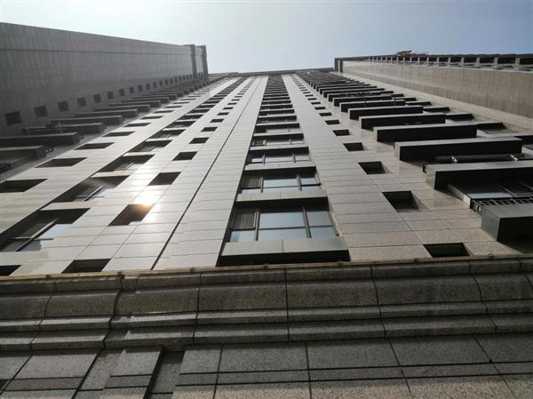 在楼底近乎仰角垂直拍摄楼宇,整体效果不错。但是在光线较稀疏处,其出现了轻微的噪点,放大来看细节没有达到极致细腻。