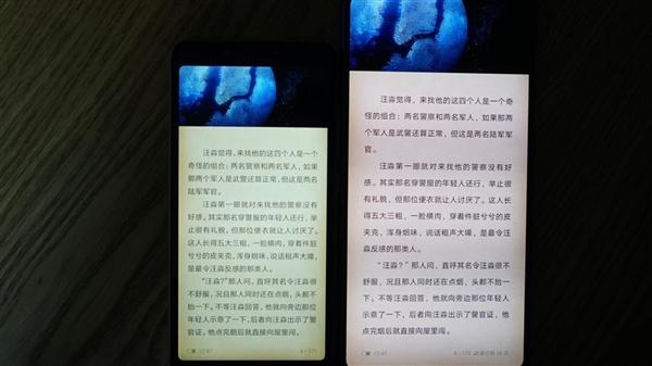 笔者在分别两部手机当中打开多看阅读APP,翻阅《三体》,下图为显示效果对比。