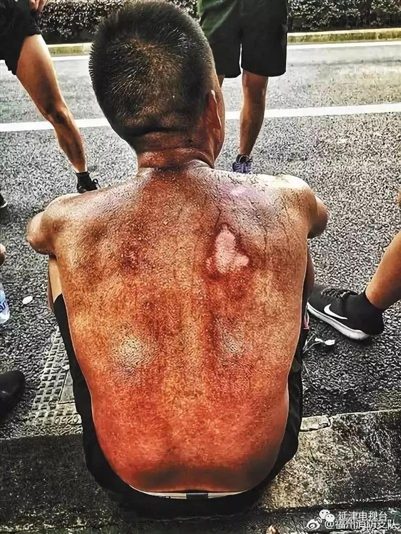 这是福州消防支队消防员沈伍呷在一次负重长跑训练后的照片