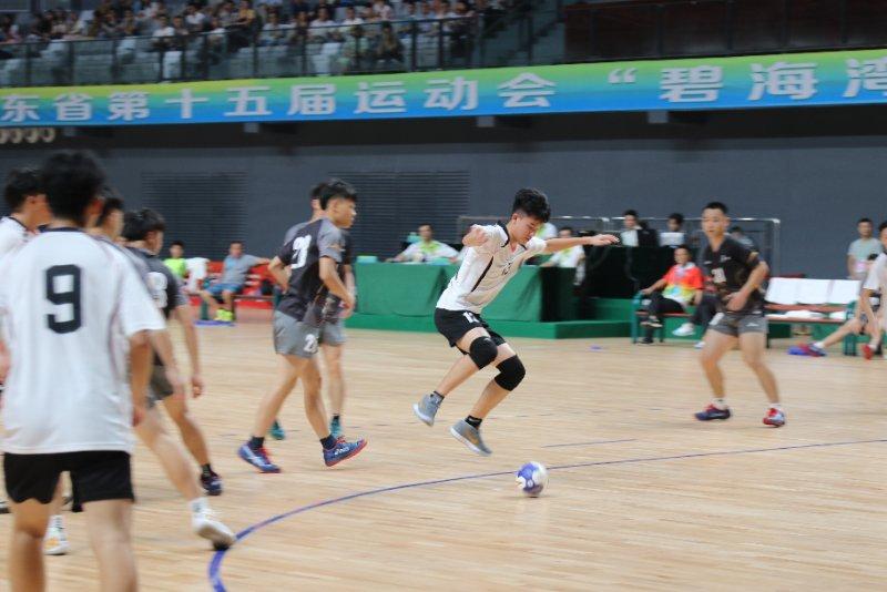 7月17日,广东省第十五届运动会手球(男子组)比赛在肇庆体育中心体育馆激烈开赛。