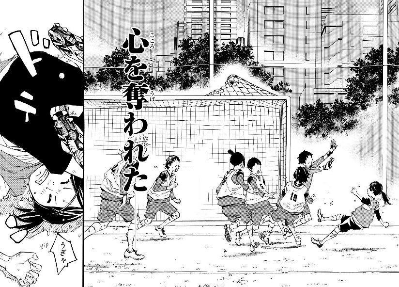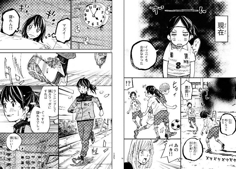 摘自漫画第4话。在弱小的蕨菜南开始自己青春的各位高中女足球选手,现实并不是甜蜜的。