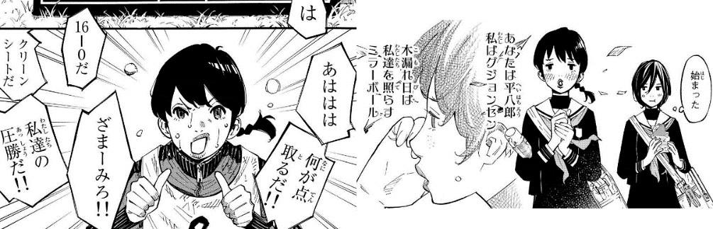 在蕨菜南最初对阵久乃木学园的训练赛中,新川老师就用很大篇幅详细描写足球动作,例如佃真央射门的连续分镜,把脚力惊人的佃真央极具魄力的一记射门描写得十分震撼。