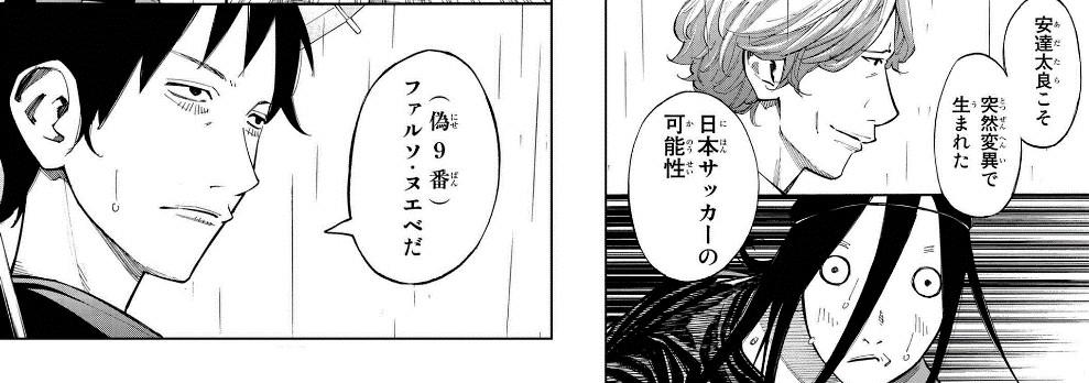 摘自漫画第16话,深津发现浦和邦成的安达太良在场上的职责,后藤田认为这样的球员代表日本足球的可能性。
