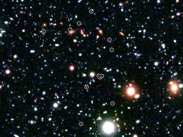 早期形成星系一般离地球很远,它们发出的光需要数十亿年才能到达地球。正如前文所说,这是斯皮策发挥长处的领域。除了之前的几项成就,在这一领域,最令人惊讶的发现之一是“大宝贝”星系,即那些比科学家认为的早期形成星系更大、更成熟的星系。科学家认为,大的现代星系是由小星系逐渐合并而成的。但是,“大婴儿”星系表明,在宇宙历史的早期,可能一开始就有大量恒星聚集形成的星体。