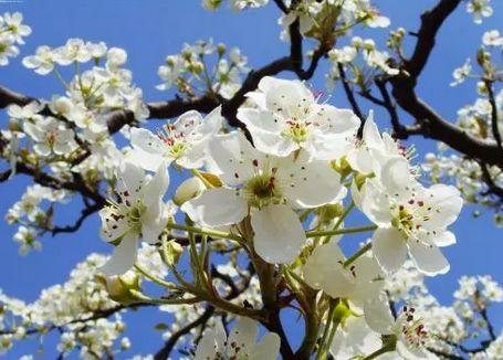 每当梨花盛开的时节,满树晶莹清丽,如玉似雪,花色潋滟,盈盈地开在枝头娉婷浅笑,氤氲一身梨。
