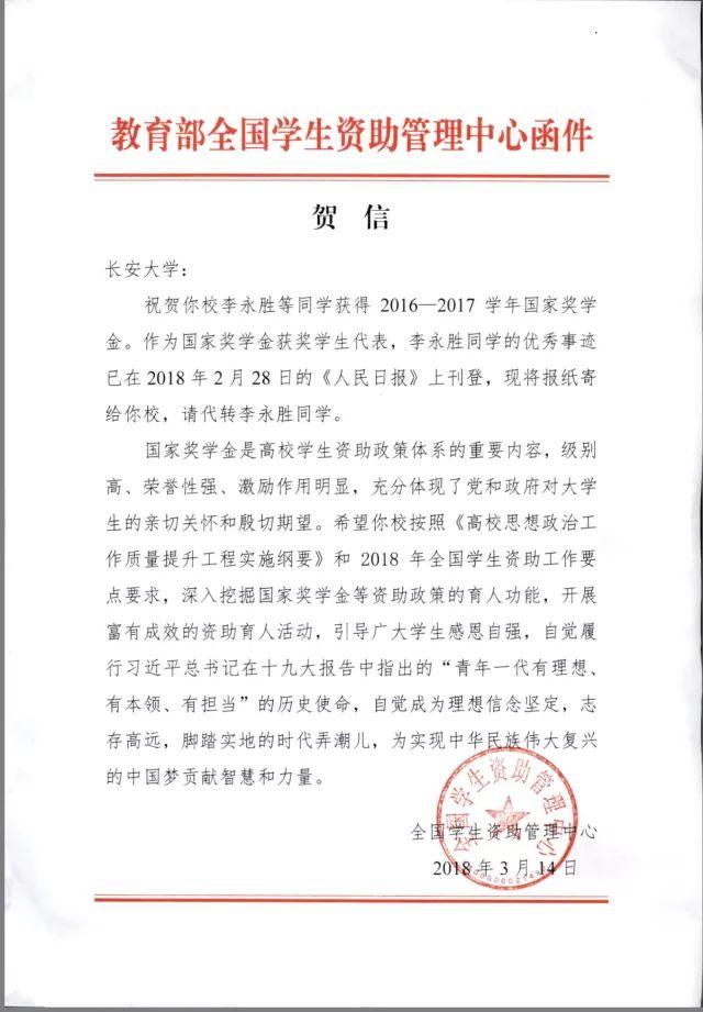经严格选拔、评审,2017年本专科学生中,有约5万名优秀学生荣获国家奖学金。作为国家奖学金学生代表,我校李永胜同学的优秀事迹在2018年2月28日的《人民日报》上刊登。此次刊登的100人均是经各省(自治区、直辖市)和各高校推荐评选出的国家奖学金获奖学生中的优秀代表。展示他们的风采,是为了激励更多青年学生坚定理想信念、志存高远、脚踏实地,勇做时代弄潮儿,在实现中国梦的生动实践中放飞青*梦春**想,在不懈奋斗中书写人生华章。