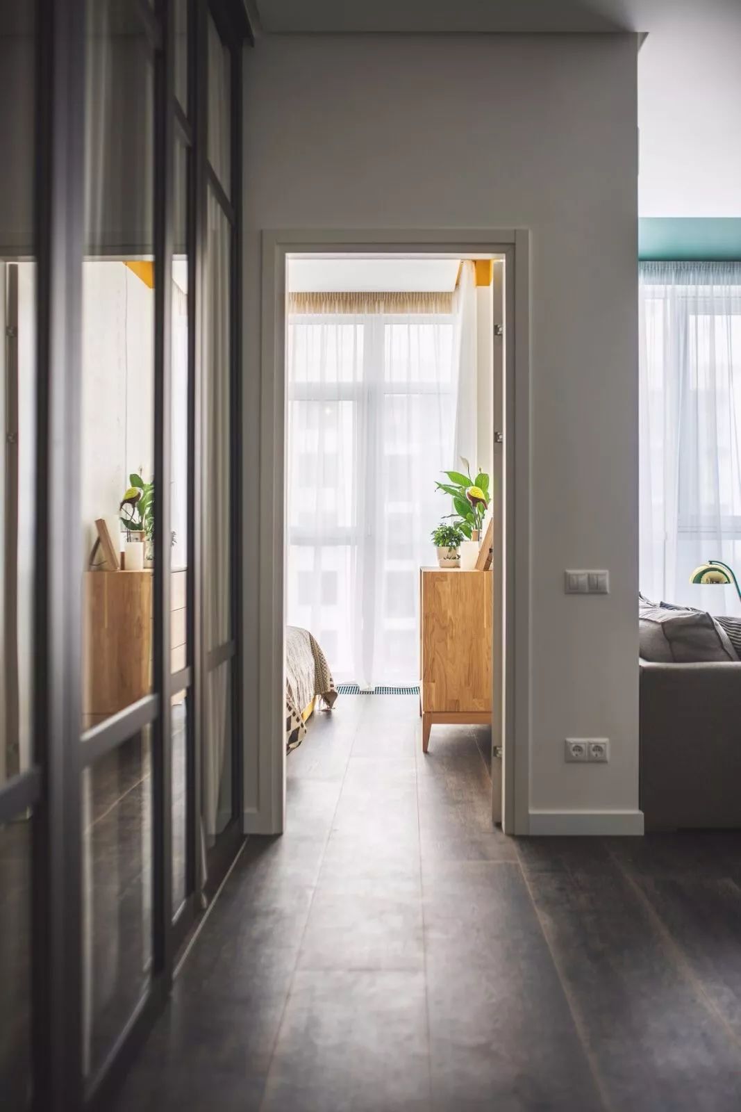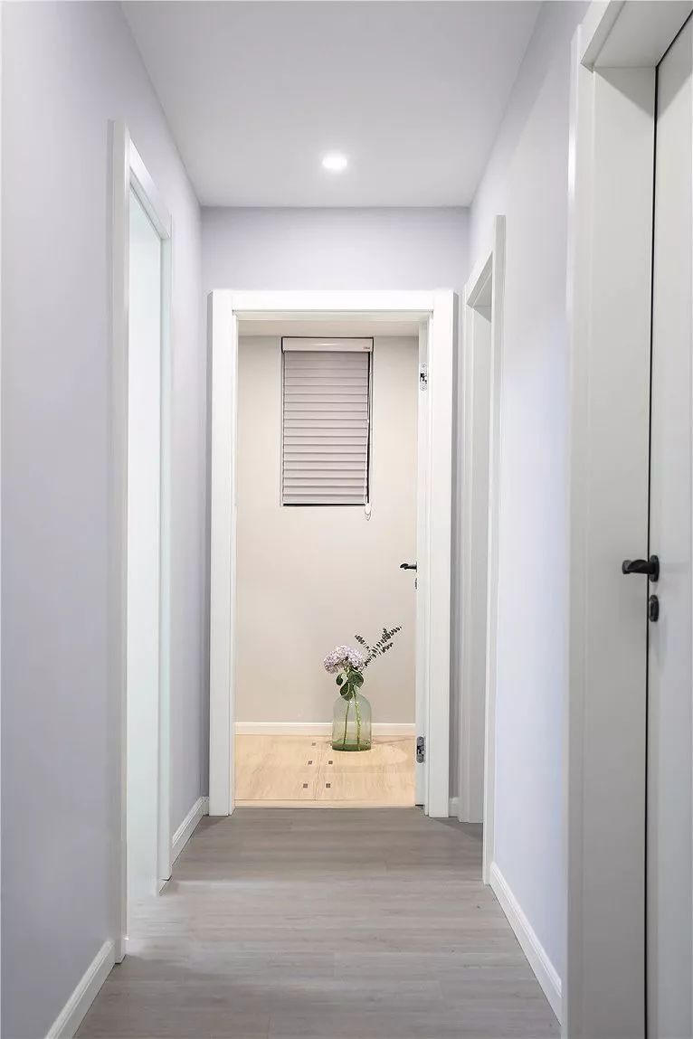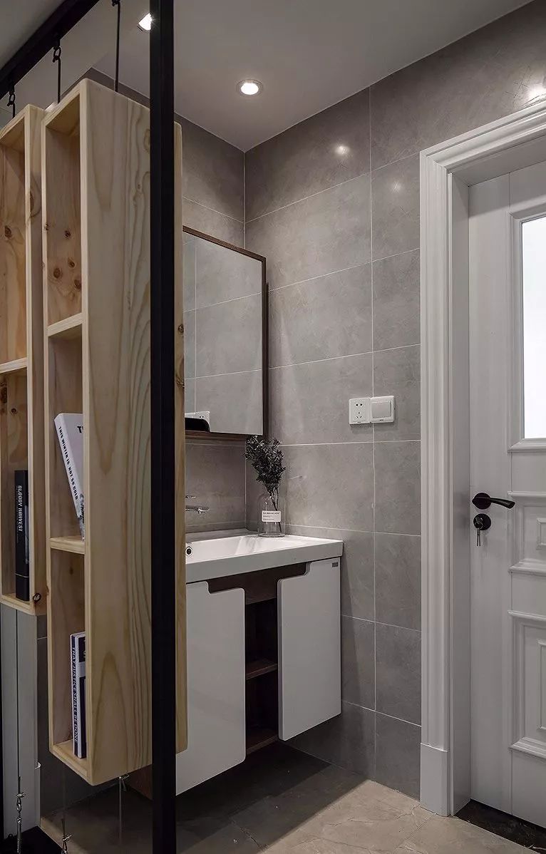 若空间允许的话,可以在卫生间门前做一个隔断柜或者屏风,以起到遮挡卫生间门及阻碍污气排出的作用;
