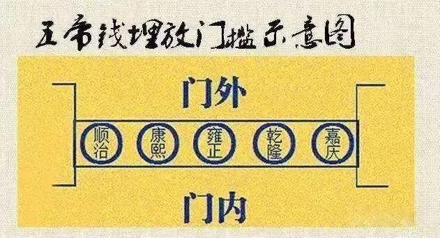 一、五帝钱:五帝指顺治、康熙、雍正、乾隆、嘉庆,做法是可以把五帝钱串起来挂在卫生间门上,或者埋放在门槛石内;