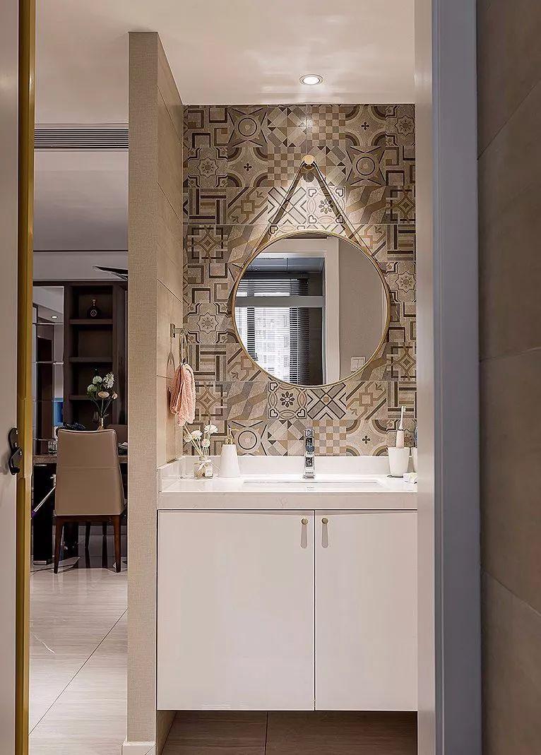 在卫生间门口养一盆阔叶植物,当然植物其实也是一种软隔断,可以装饰,另外据说生命力旺盛的阔叶植物可以吸收卫生间的臭气、潮气和湿气,释放新鲜空气;