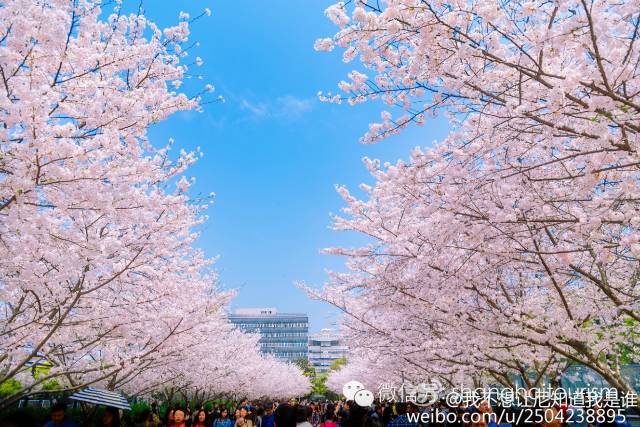 上海最早最知名的赏樱地就是这里了,樱花盛开的同济校园总是特别浪漫,通往南校区的路两旁种满了樱花树,有200多株,远远就能看到一大片一大片粉色的“云团”,爱校路上人山人海,可是该去的还是会去,没办法!