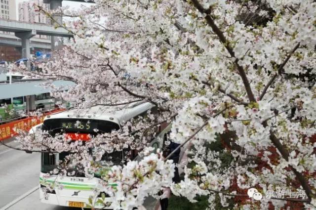 有“上海最美公交车站”之称的南浦大桥浦西公交枢纽站,每年樱花季都会吸引一群文艺青年来这里取景拍照。公交车进站的时候犹如驶入一片粉白色的花海,春日的美艳气息,扑面而来。据说公交公司还会特地停几辆车在花树下,供游客摆POSE。网友说目前花还没有开很多,再等等?