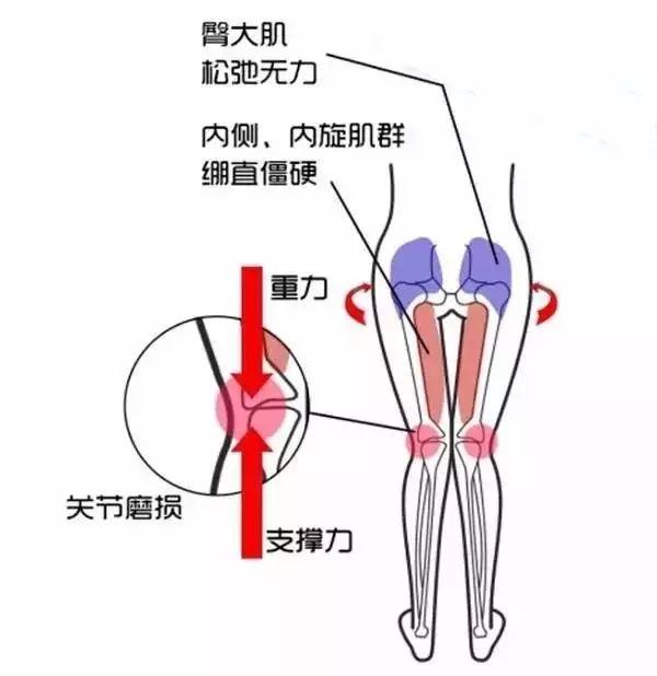 xo型腿的同学可能更头痛,不光是足外翻,还有膝关节外翻的现象,这也是和日常的习惯息息相关的。由于股骨和胫骨位置的不平衡,很容易将压力集中于膝盖外侧,从而形成膝关节疼痛或关节炎。