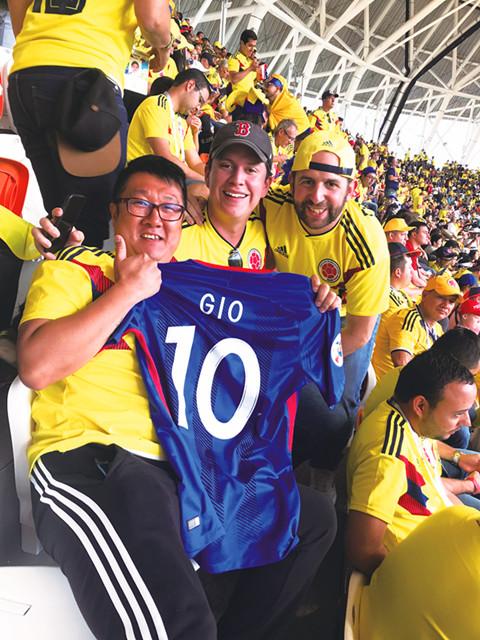 因为同样来自亚洲,沈闻涛还被很多哥伦比亚认作是日本球迷,但他自豪地向他们介绍自己来自中国,哥伦比亚球迷接连说出了瓜林和莫雷诺的名字,纷纷表示他们是很好的球员,说道:“我知道效力于中国上海的球队,莫雷诺还入选了大名单,我们现在可以通过网络看到中国的联赛。”聊得正酣时,沈闻涛拿出手机,给哥伦比亚球迷们展示着与莫雷诺和瓜林和合影。足球成了大家共同的语言,一下子拉近了彼此的距离。
