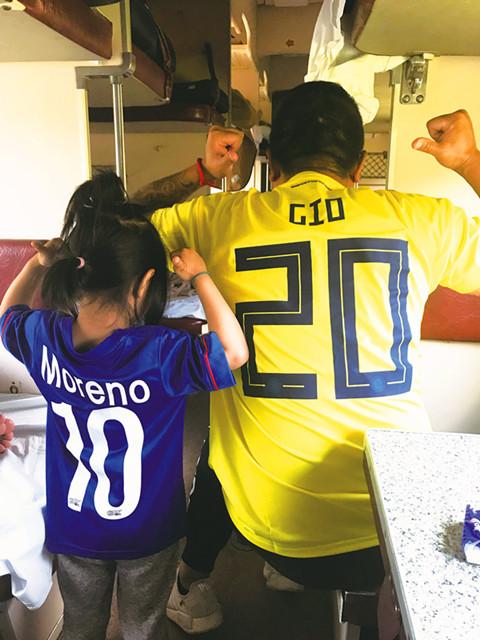 当去年俄罗斯世界杯官网第一轮盲选售票时,沈闻涛毫不犹豫地选择了哥伦比亚在萨兰斯克对阵日本队的比赛。当时莫雷诺仍在哥伦比亚的集训名单中,身披20号战袍,但是遗憾的是,这位申花队长在世界杯开始前的最后一刻落选,这多少让远隔重洋的上海申花球迷有些心疼和难受。他们中的许多人,因为莫雷诺,选择了哥伦比亚队作为主队,沈闻涛也是其中之一,“我这次网上抽签选择球票,第一个选择的就是哥伦比亚在萨兰斯克对日本队的比赛。当时还是非常希望我们的队长能够进世界杯的大名单,完成他的梦想,也是每个申花球迷的梦想,但可能最后因为伤病的原因,最终没能入选……”即使如此,他还是在比赛当日穿上了哥伦比亚20号球衣,并给女儿穿上了申花10号球衣。“我虽然穿着哥伦比亚的球衣,但是向外界传递的是来自上海的友好信号——在上海,也有一群和我一样的申花球迷一起支持哥伦比亚队。”