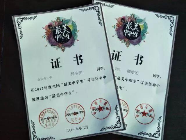 宜宾共青团推荐的宜宾市三中邱昱洋同学被推选为全国“最美中学生”,宜宾市职业技术学校卿镇宏同学被推选为全国“最美中职生”。