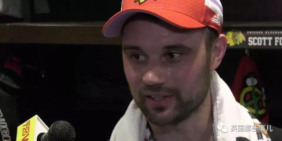 “Scott Foster,我们的守门员!在NHL的黑鹰队打比赛!救了这么多球!冲啊!”