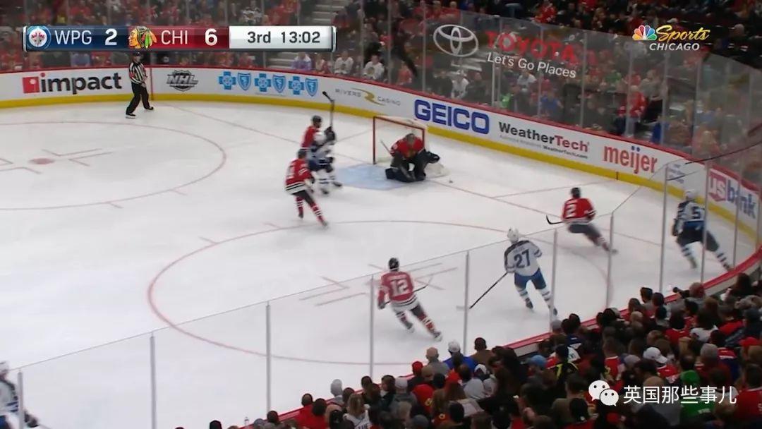 北美冰球职业联盟(NHL)的这一场是“芝加哥黑鹰”对战“温尼伯喷气机”。