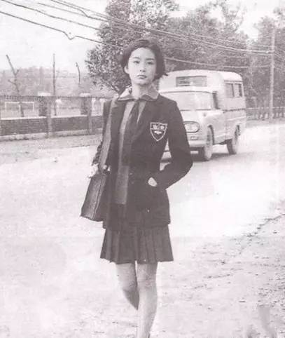 1973年,19岁的林青霞穿着校服去上学。