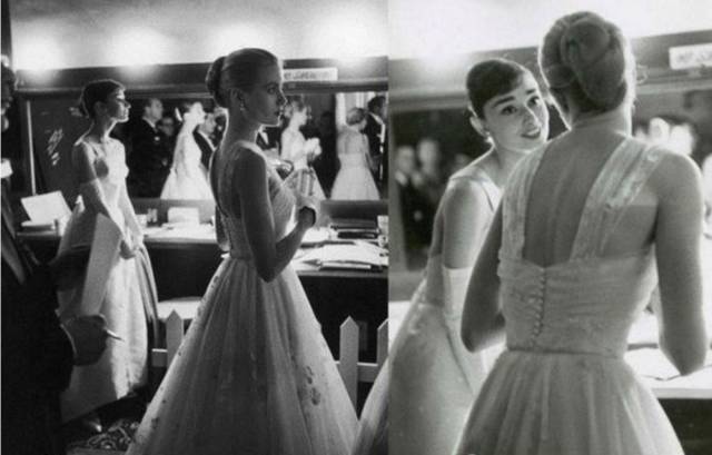 格蕾丝·凯莉和奥黛丽·赫本在做准备。