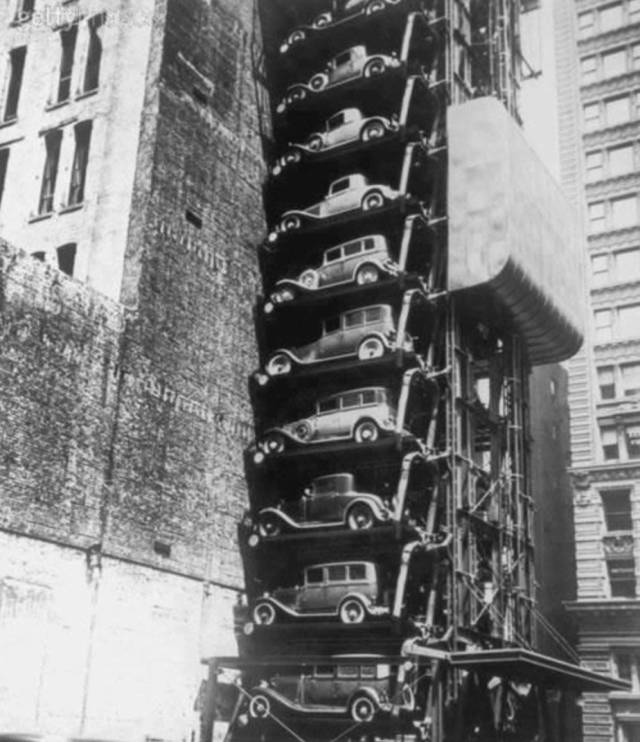 20世纪30年代,纽约的垂直停车场。