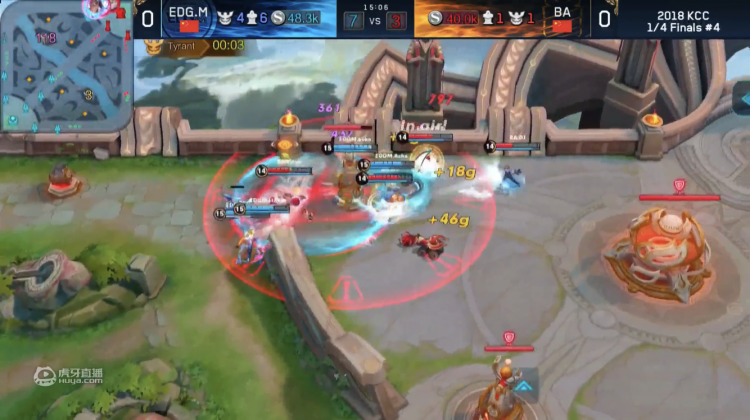 我们借第三局对局来看看他们高在哪里。BA选出大乔之后,EDG.M更加强调打架,试图从正面直接打崩BA,BA的阵容则一改他们往日铁通阵的风格,选出了极其暴躁的四脆皮,可以说非常依赖大乔的电梯流来保证团战。同时,守约加上花木兰线上清兵极快,非常契合他们的运营理念。