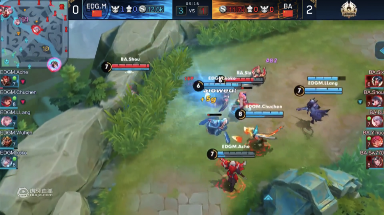 因为这波团战,EDG.M为他们的冲动付出了代价。BA则稳扎稳打,凭借大乔的机动性将兵线转化成为自己的优势,成功逆转。