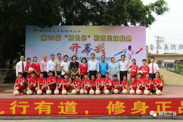 畅享绿茵场,阳光下成长。近日,柳州师范学校附属小学举行了第20届“校长杯”足球赛开幕式暨全国青少年足球特色学校揭牌仪式。柳北区教育局、兄弟学校嘉宾及家长代表等200多人,参加活动见证了该校阳光体育教学特色展示。