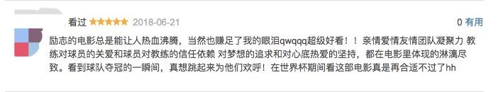 作为此次俄罗斯世界杯的献礼影片,电影早前在俄上映后已经获得了票房口碑的双丰收,此次首度登上中国大荧幕,在1000余名影迷球迷的检验下依旧表现不俗。