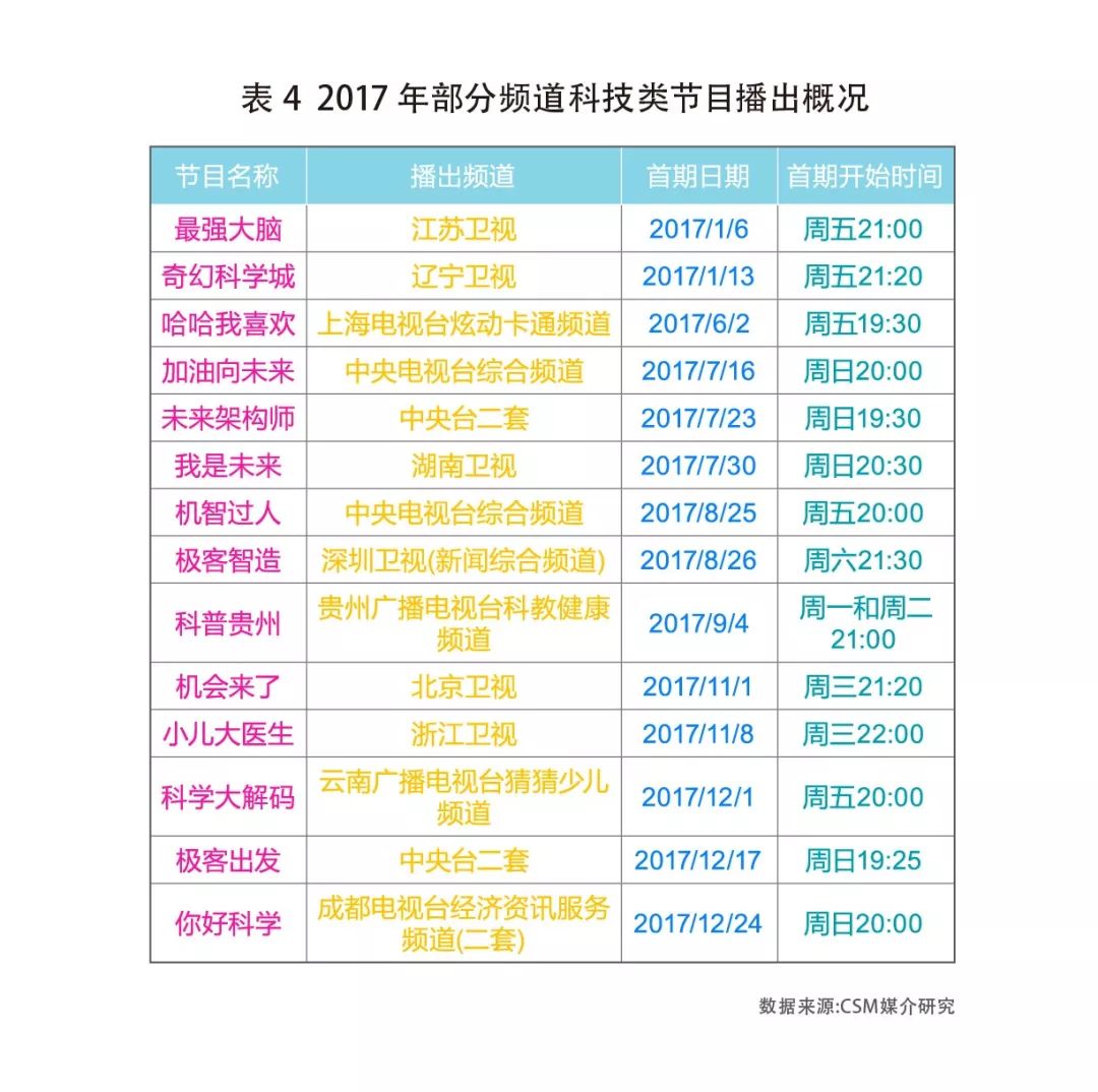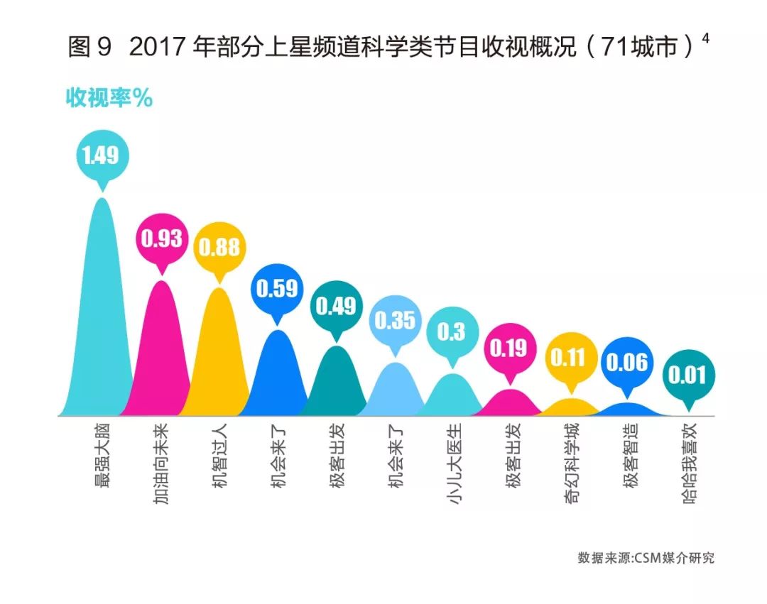 2017年下半年,在*电总广局**“鼓励电视上星综合频道在黄金时段增加公益、文化、科技、经济类节目的播出数量和频次”这一政策的大力扶持下,包括央视在内的多家卫视平台纷纷放眼 “科技”这一高端领域,包括央视综合频道《加油!向未来2》《机智过人》;央视二套《未来架构师》;湖南卫视《我是未来》;深圳卫视《极客智造》等节目陆续来袭。科技类节目的创作也逐渐从最初的说明解释为主逐渐向更加综艺化的形式转变。