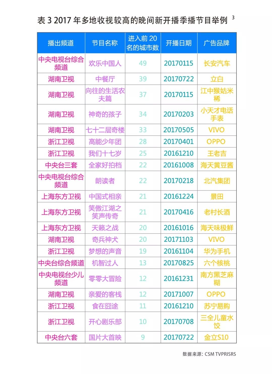 [3]数据范围:TVPRISRS,71城市,2017年1月1日-12月31日,18:00-24:00,上星频道,第1季,进入当地同时段季播节目收视率前20名 TOP20城市数的季播节目。