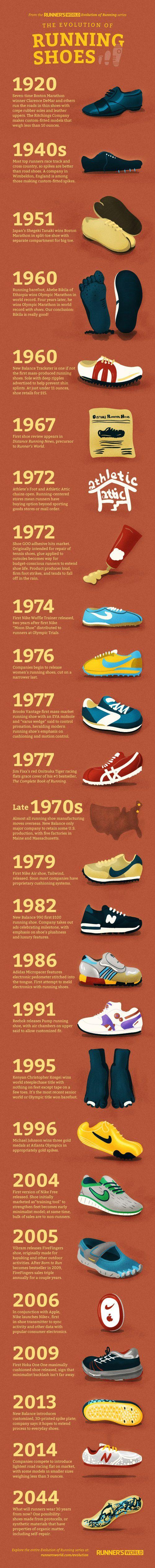 跑鞋的发展和跑步的发展几乎是同步的,在古希腊运动会时期,人们大多光着脚跑,部分地区的人则会穿着编织的简易凉鞋。而现代跑鞋的发展则是近200年的事情,马拉松的逐渐普及也加快了跑鞋的发展进程。