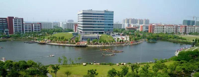 在奉贤校区建设过程中,学校在原有的河道之上进行了重新挖掘,规划了如今这个面积达38000多平方米、与外界自然河道连通的景观湖——通海湖。月牙形的湖面在阳光照射下波光粼粼,湖面上木桥掩映在一片竹林中,桥下的黑白天鹅、麻鸭等悠然自得地划水而去,一转眼,便钻到一排龙舟间的缝隙里去了。