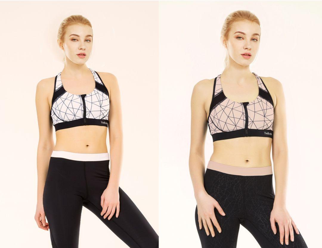 中强度运动内衣主要依靠弹性织物对乳房形成一定压力从而达到固定作用,与低强度运动内衣相比对于剪裁上要求更为严格,要求充分考虑乳房形状,结构以及肩背部的受力等因素。