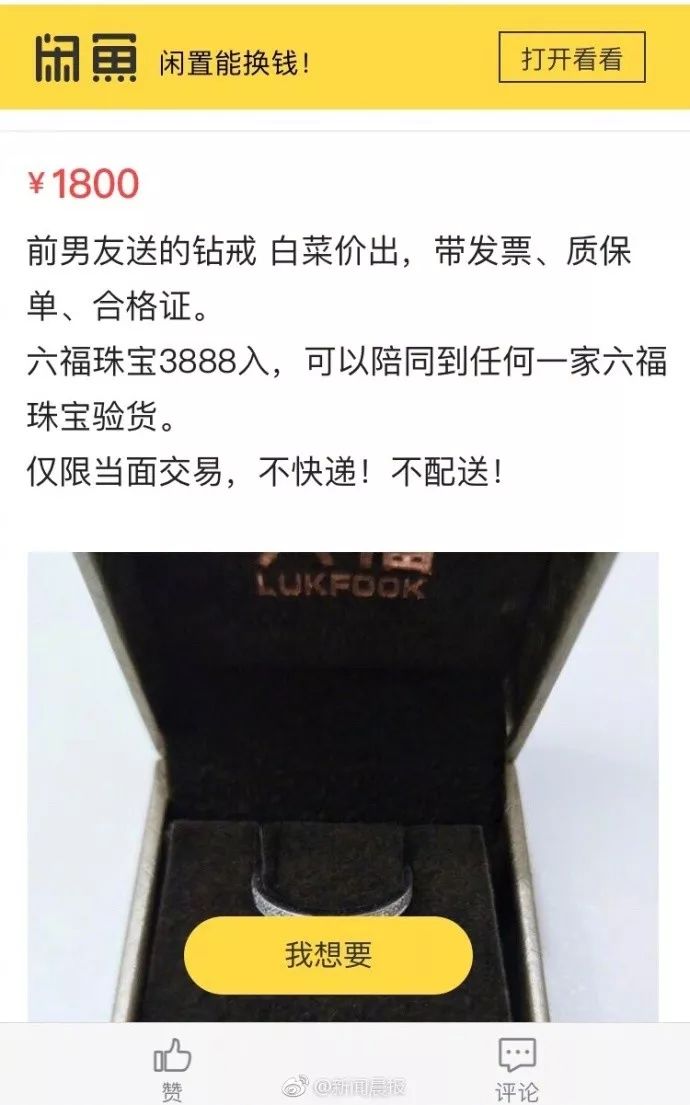 据微博网友“土肥圆”爆料,一小伙在闲鱼收购失恋的女孩低价甩卖的前男友礼物,加价之后再次转卖,坦言平均能赚50%。不小心在闲鱼搜了一下前男友,发现打开了新世界。许多女生因为“留着心烦”、“随便处置”等理由而低价甩卖前男友“遗物”。网友评论:女人的情绪真的是第一生产力啊,开心的时候买买买,伤心的时候大甩卖。(新闻晨报)