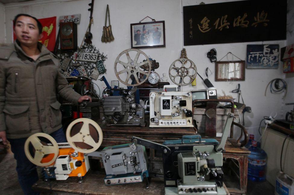 3月20日,在济南二环东路的一家修车铺里,80后小伙宋胜正在摆弄他收藏的老式放映机。朋友们都称呼宋胜为“破烂王”。老式胶片放映机收藏了20多台,各种经典电影拷贝100多部。宋胜收藏电影放映机已有十年,从上世纪60年代前苏联产的老五四放映机到90年代国内生产的长江F.16,以及各种经典电影拷贝,只要和老电影有关的,他全都收藏。(山东商报新媒体记者 周里)