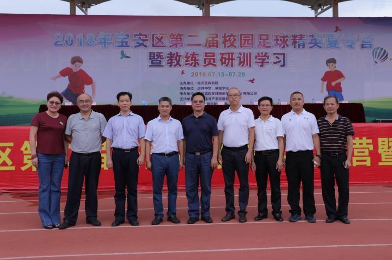 2018年7月13日,深圳宝安区第二届校园足球精英夏令营暨教练员培训班在沙井中学和荣根学校进行。深圳市教育局体卫艺处处长钟子荣、宝安区教育局副局长吴永明、宝安区教育科学研究院院长彭茂发和棕榈体育常务副总裁张雪松等领导和嘉宾出席开营仪式。本次夏令营共有来自宝安21所学校男女7个年龄段的149名校园足球精英和18名中外教练员参加。