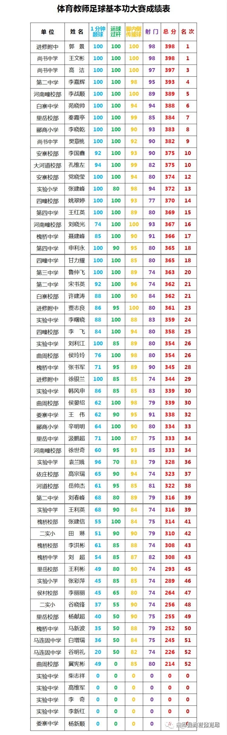 此次体育教师足球基本功大赛为广大一线体育教师提供了展示锻炼的平台,将进一步促进体育教师业务素质不断提高,也必将推动曲周校园足球向更高的水平发展。