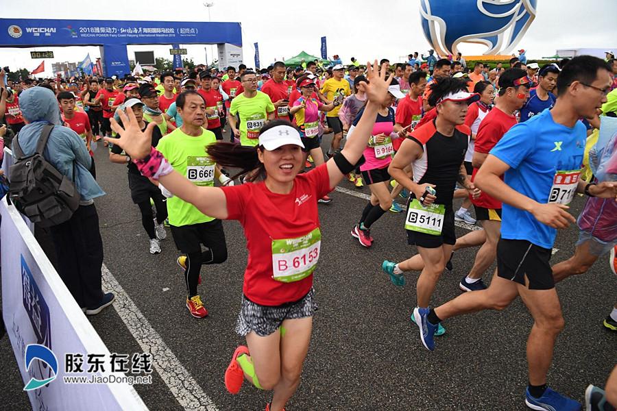 胶东在线7月1日讯(记者 张倩)七月的海阳,天蓝海碧、如诗如画。2018潍柴动力?仙境海岸海阳国际马拉松赛,7月1日在海阳鸣枪开跑。恰逢*党**的生日,万名选手身着*旗国**红和*旗国**黄战衣,迎着微微细雨,用一场马拉松,祝福中国*产党共**97周年生日快乐。