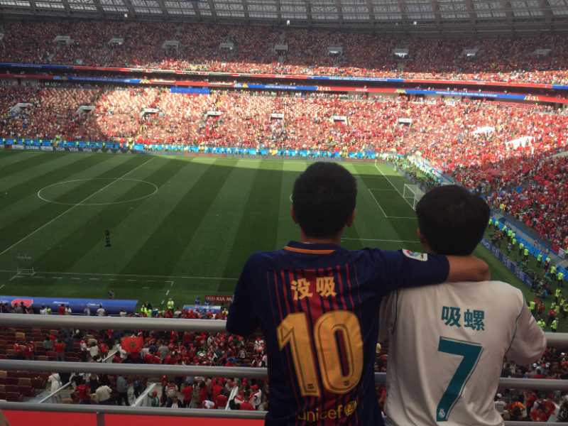 长江日报融媒体7月1日讯(特派记者马万勇发自莫斯科)俄罗斯世界杯八分之一决赛6月30日晚上开打了,先后出场的便有全世界球迷都喜欢的梅西与C罗。这让长江日报记者想起了前不久在卢日尼基偶遇的两位中国铁粉“吸螺(C罗)”与“没吸(梅西)”。这对福建小哥想必此时已经回国守在电视机前,如同在俄罗斯比赛现场时一样,携手并肩为他们的偶像加油吧。