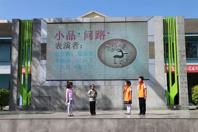 小小旅游志愿者用小品表演,弘扬志愿服务精神,引导大家更多的参与志愿服务。